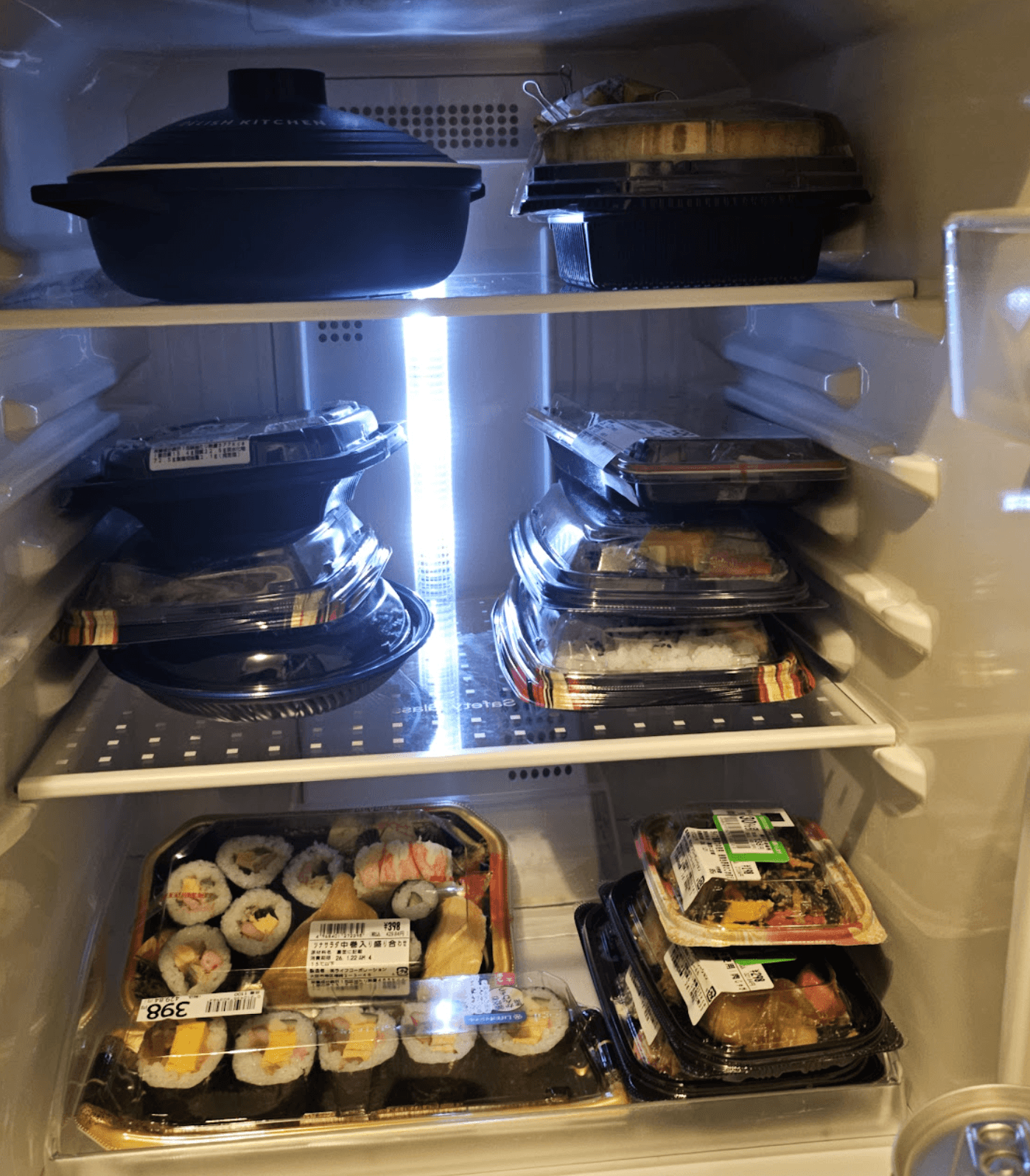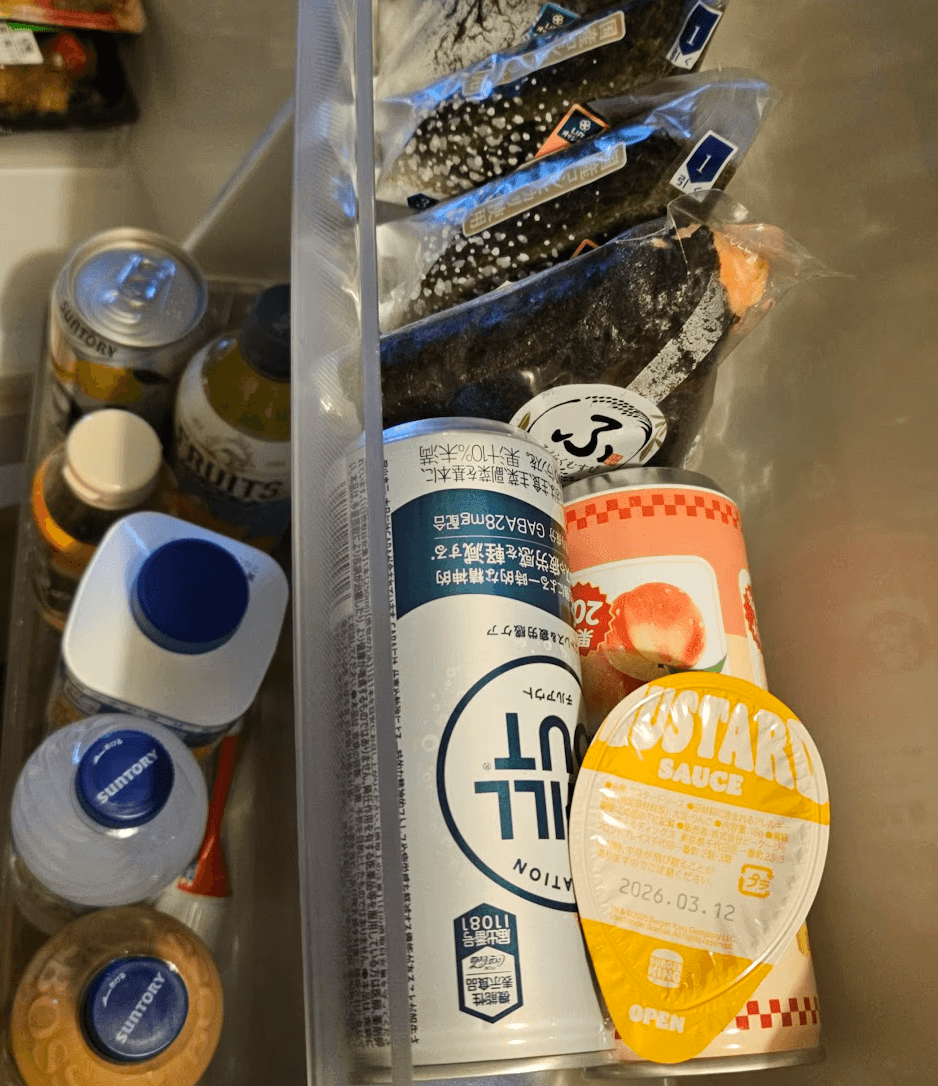 今の冷蔵庫の中身はこんな感じ。信じて、ニートじゃないよ!ただの出不精なんだ。一度アパートに入っちゃうと、外に出るのが面倒になちゃって。ましてやゲームを始めちゃったら、もう止まらない…